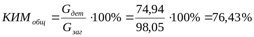 Помимо полученного коэффициента использования металла применяют величину общего коэффициента использования металла, учитывающего все потери материала заготовки в процессе изготовления детали, включая потери в кузнечных, механических и вспомогательных цехах: