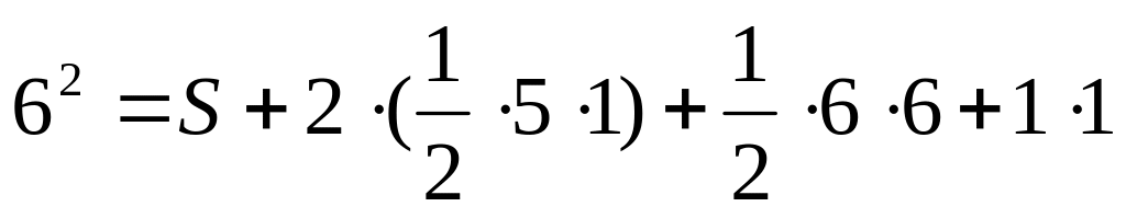 Площадь данного квадрата состоит из площади исходного остроугольного треугольника плюс площади двух прямоугольных треугольников с катетами 1 и 5 плюс площадь прямоугольного треугольника с катетами 6 и 6 и плюс квадрат со стороной равной 1. Обозначим площадь исходного треугольника за S.