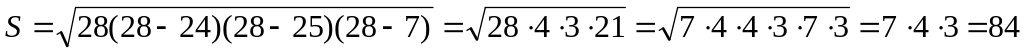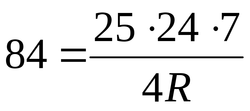 Стороны треугольника равны 25,24 и 7.Найти длину окружности, описанной около треугольника и площадь круга, вписанного в треугольник.