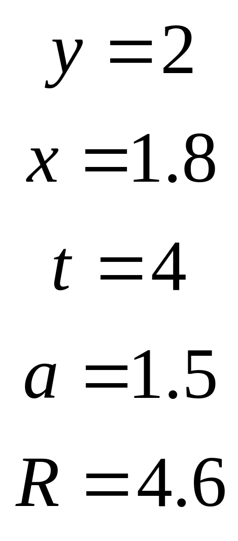 x=1,8 y=2 t=4 a=1,5 R=4,6 b=0,3 |