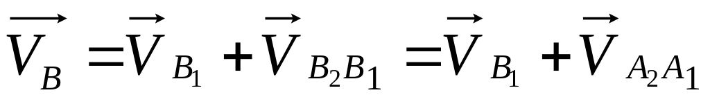 данный момент совпадают соответственно с точками А2 и В2 расположенными на звене 2. В нашем случае точка А2 расположена над точкой А1, и точка В2 над B1.При составлении векторных уравнений будем основываться на следующих соображениях: