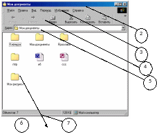 Відкрийте меню Вид і вивчіть способи відображення об’єктів у робочій області вікна. Застосуйте по черзі кожний з цих способів для вікна Мои документи. Зробіть висновки.
