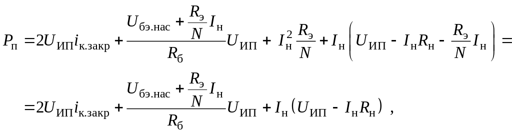 где Pзакр = 2UИПiк.закр – потери мощности в закрытом плече каскада; Pоткр = Pвх + Pэ + Pкэ – потери мощности в открытом плече каскада. Здесь: