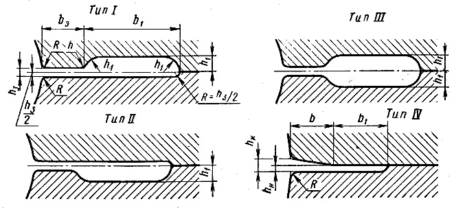 Типы канавок, применяемых в открытых штампах, показаны на рис.22.