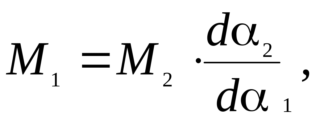 условия равенства мгновенных работ на ведущем и ведомом валах для любого положения четырехзвенника момент М1 определяется соотношением