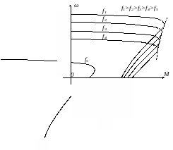 Перший спосіб використовується, коли момент навантаження, незалежно від швидкості обертання, залишається постійним. Починаючи з , здатність перевантаження двигуна зменшується, бо при низьких частотах активний опір обмотки статора стає співмірним з індуктивним і суттєво впливає на потік у повітряному проміжку двигуна. Внаслідок спаду напруги на активному опорі магнітний потік зменшується і, тим самим, зменшується максимальний момент. Приблизний вигляд механічних характеристик двигунів нормальної серії показаний на рис. 5. Щоб критичний момент при низьких частотах не зменшувався, необхідно напругу змінювати за законом