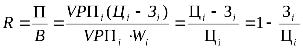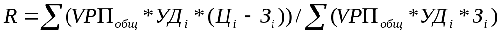 Уровень рентабельности производственной деятельности (окупаемость затрат), исчисленный в целом по фирме (R), зависит от трех основных факторов первого порядка: изменения структуры реализованной продукции, ее себестоимости и средних цен реализации.