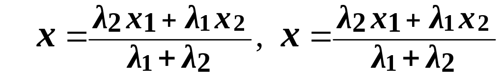 В частности, при λ1 = λ 2 (точка М делит отрезок АВ пополам) :