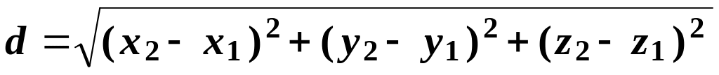 Расстояние между двумя точками А(x1, y1, z1) и В(x2, y2, z2) в пространстве:
