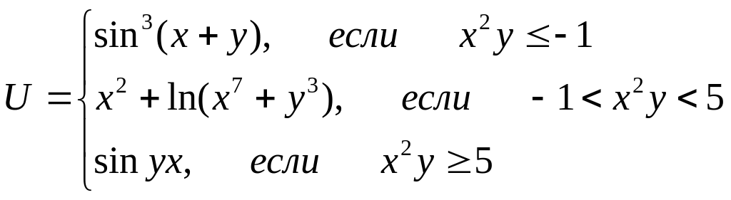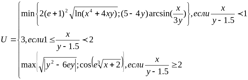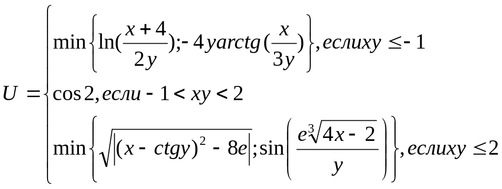 Составить блок-схему, написать программу и выполнить ручной счет для вычисления таблицы значений функции U, если значения аргумента х изменяется в заданном диапазоне с заданным шагом, значение y=Const подобрать самостоятельно с учетом области определения функции U.