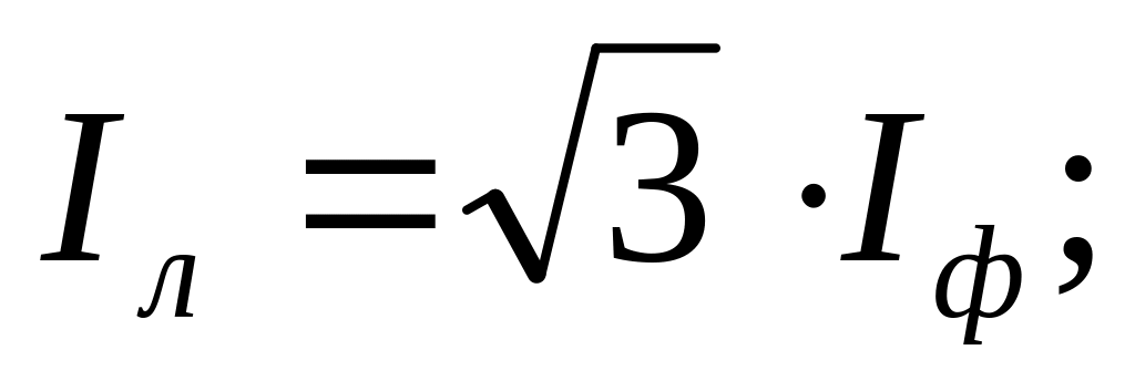 Үшбұрыш бойынша жалғанған фазалық тоқтардың есебі үшін қатынас:
