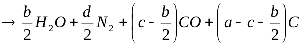 Для составления приближенного уравнения реакции взрывчатого превращения запишем формулу ВВ в виде CaHbOcNd.