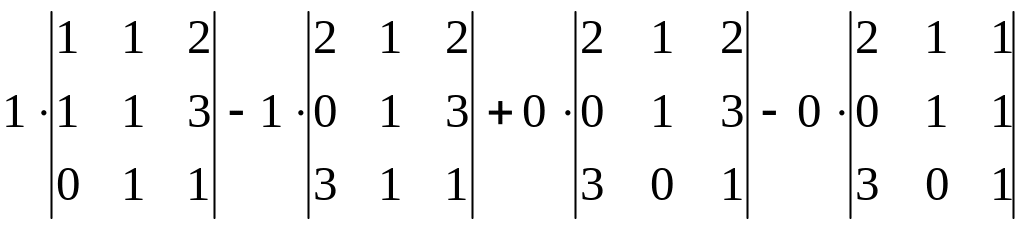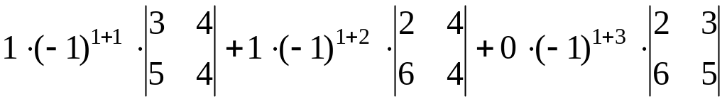 Очевидно, что последние 2 минора 3-го порядка вычислять не надо, так как они умножаются на 0. Осталось вычислить два минора 3 порядка, то есть мы свели определитель 4 порядка к определителям 3 порядка.