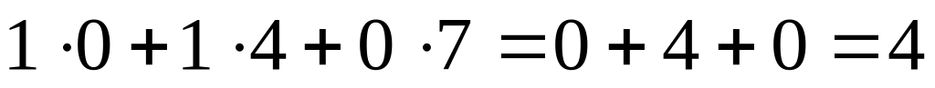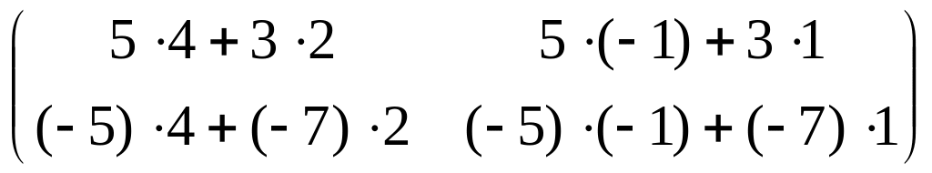 Например, если умножаем строку номер 1 на столбец номер 2, то и число, которое при этом получается, ставим в 1 строку 2 столбец новой матрицы. Итак,