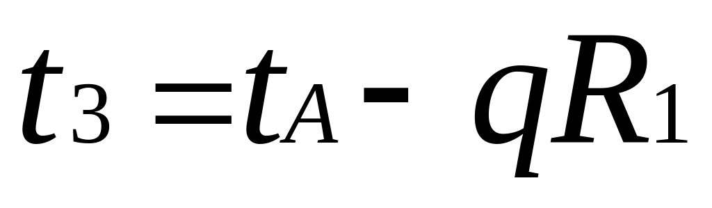 За формулами 6.11 - 6.14 обчислюють теоретичні густини теплових потоків, температури теплосприймаючої поверхні t3, тепловіддаючої поверхні t5 і температуру в точці контакту шарів t4 при температурі гарячої рідини tА=200оС, 400оС, і 600оС. При розрахунках температур поверхонь використовують обчислені за формулою 6.11 значення густин теплових потоків, а значення термічних опорів - з таблиці 6.3.