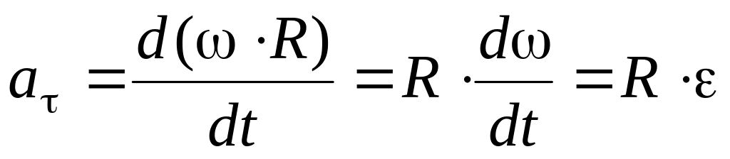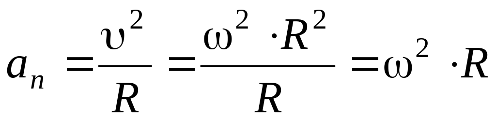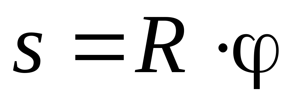 Таким образом, связь между линейными (длина пути s, пройденного точкой по дуге окружности радиуса R, линейная скорость , тангенциальное ускорение а, нормальное ускорение an и угловыми величинами (угол поворота , угловая скорость , угловое ускорение выражается следующими формулами: