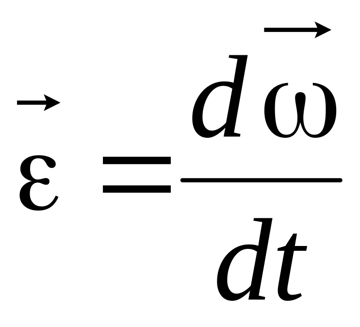 Угловым ускорением называется векторная величина, равная первой производной угловой скорости по времени: