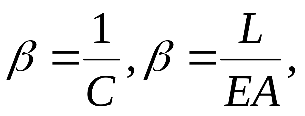β – коэффициент податливости – численно равен изменению длины бруса под действием единичной осевой силы.