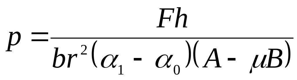 При интегрирования выражений для А и В получаем при синусоидальном распределении давления