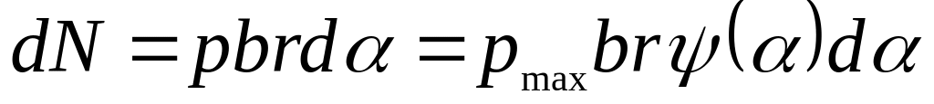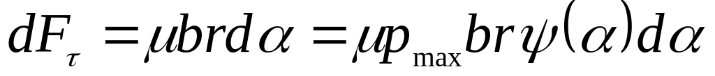 На элементарном участке накладки со стороны барабана действует нормальная реакция