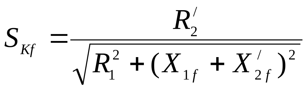 где дополнительные индексы f указывают на то, что соответствующие параметры определены при частотах питающего напряжения, отличных от f1=50 Гц. Для построения механических характеристик предварительно нужно определить критическое скольжение и критический момент для частоты, не равной 50 Гц.