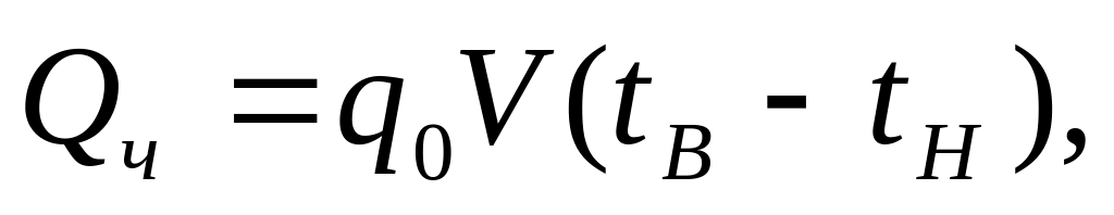 Часовой расход тепловой энергии Qч, кДж, на отопление здания определяется по формуле