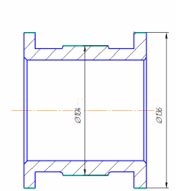 Деталь «Вал» имеет цилиндрическую форму. Общая длина детали вдоль ее оси симметрии равняется 105 мм. Максимальный диаметр детали 136 мм. Деталь имеет центровое сквозное отверстие диаметром 96 мм. В отверстии сняты фаски 1.6х30 мм. Деталь имеет уступ на диаметре 136 мм длиной 5 мм с 2-х сторон. На торце по диаметру 120 мм находятся 8 отверстий диаметром 8 мм. На внешней поверхности находится выступ диаметром 40 мм. Диаметр 104 имеет 9 квалитет, а диаметр 136 квалитет 7.