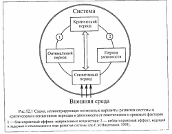 Системная модель. Универсальность такого явления как временное повышение чувствительности к внешним воздействиям позволяет рассматривать его с позиций системного подхода (Scott, 1974). Период повышения чувствительности рассматривается в этом случае как необходимый этап в развитии любой системы, соответствующий моменту ее консолидации. Организационные процессы в системе в этот момент идут с наибольшей скоростью. В случае критического периода (как, например, в эмбриогенезе) процессы преобразования системы проходят в течение короткого интервала времени, а затем полностью прекращаются.