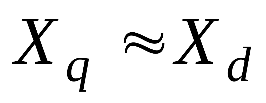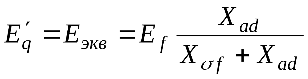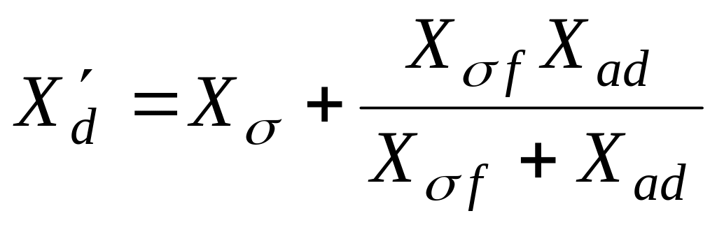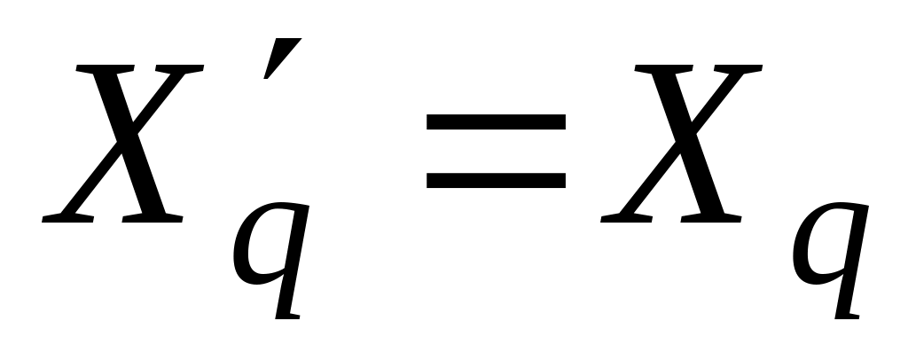 При расчёте переходных ЭДС, реактивностей и токов, так как обмотка возбуждения ориентирована в продольной оси, а демпферные обмотки не учитываются, или отсутствуют, поэтому в переходном режиме: