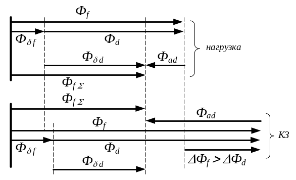 Рис. 6.4. Баланс потоков синхронной машины в начальный момент КЗ с