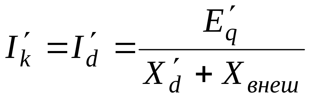 Расчёт тока в начальный момент КЗ синхронной машины, ротор которой не имеет демпферных обмоток, производится с использованием переходной ЭДС и переходного сопротивления. Эти параметры можно определить из схемы замещения СМ.