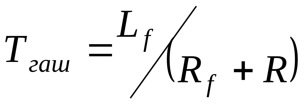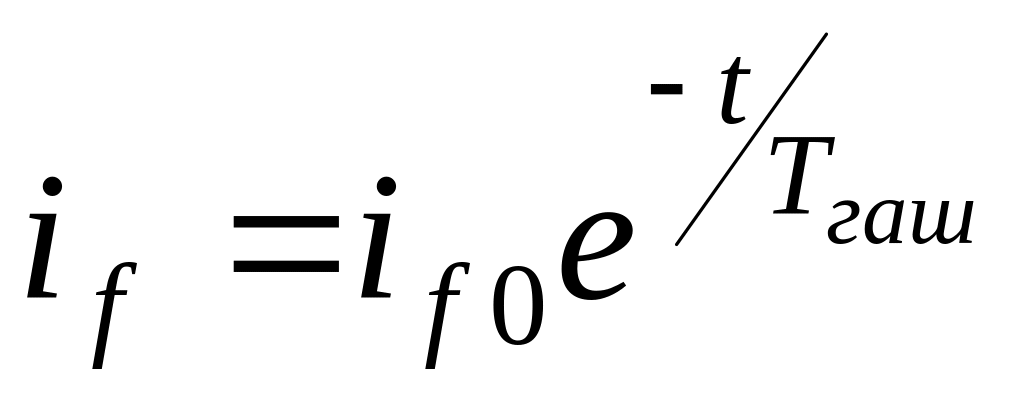 Для гашения поля обмотки возбуждения вначале замыкаются контакты 1, а затем размыкаются контакт 2. Если обмотки статора разомкнуты и не учитываются демпферные обмотки, то ток в обмотке возбуждения затухает по экспоненциальному закону