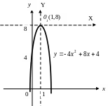 Обозначим x – 1 = X, y – 8 = Y. Получили Y = -4X2 относительно системы координат X01Y. X-1=0 – ось симметрии, A<0 – ветви параболы направлены вниз. Найдем точку пересечения параболы с осью 0y. При x=0 y=-4·02 + 8·0+4.