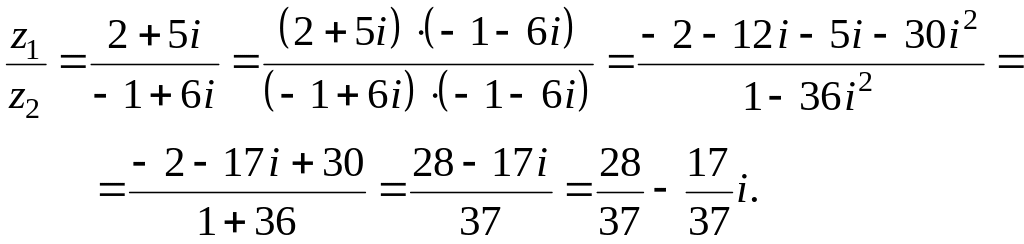 Сложение, вычитание, умножение и деление комплексных чисел определяются следующим образом.