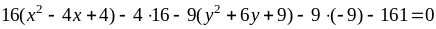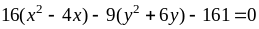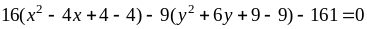 Т.к. коэффициенты при и разных знаков, то можно предположить, что это уравнение гиперболы. Чтобы убедиться в этом, преобразуем заданное уравнение к виду (**).