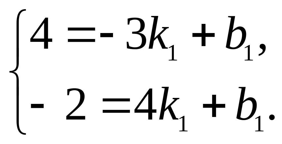 Учитывая, что координаты точки, принадлежащей прямой, должны удовлетворять её уравнению, для нахождения параметров уравнения первой прямой получим систему: