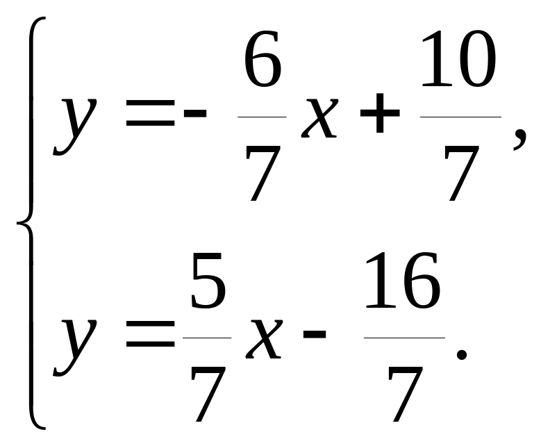 Для составления уравнений прямых и используем уравнение прямой с угловым коэффициентом. Тогда уравнения прямых в общем виде можно записать так: