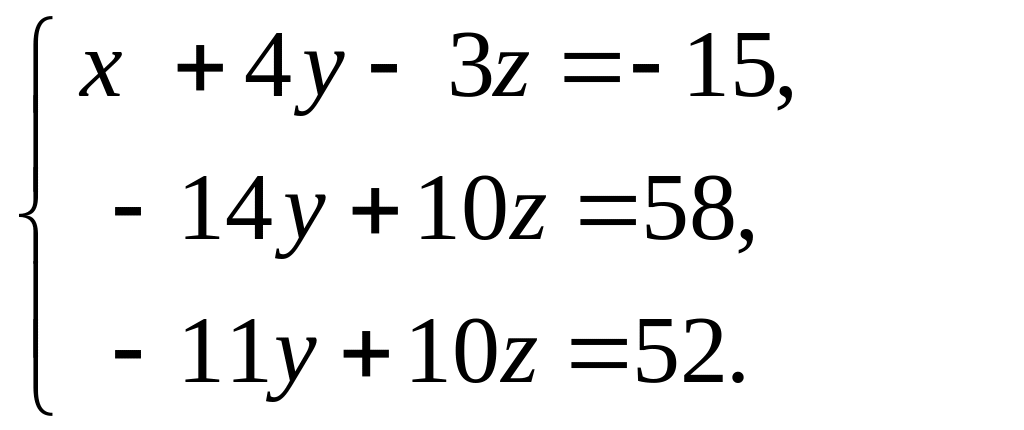 Выполним такие преобразования: ко второму уравнению системы прибавим первое, умноженное на (-3), к третьему – первое, умноженное на (-2). После выполнения указанных действий система примет вид: