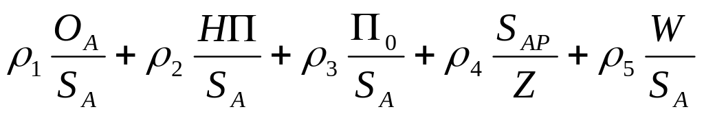 Розглянемо рейтингову модель обчислення показника банкрутства фірми – модель Альтмана. Згідно з нею показник можливості банкрутства КБ обчислюється за формулою: