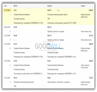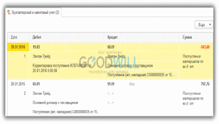 Посмотрим проводки, которые создал документ корректировки в 1с: