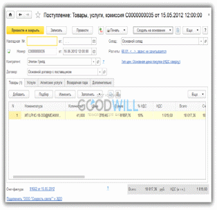 Многие заходят в документ «задним числом», исправляют его и перепроводят. Такой способ корректировки может привести к серьезным ошибкам и последствиям. Кроме того, часто необходимо просто зафиксировать расхождение данных для дальнейших разбирательств с поставщиком. Например, возьмем документ «Поступление (акты, накладные)». Корректировка реализации абсолютно аналогична поступлению. Допустим, два месяца назад мы оформили документ, где оприходуем некий товар на сумму 8997,76 руб.