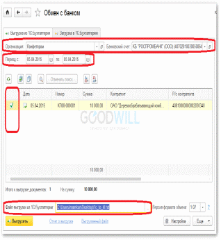 Выгрузка платежных поручений из 1С в клиент-банк.
