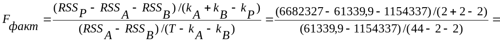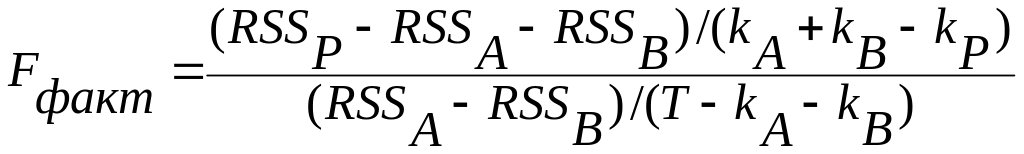 Далее определяется фактическое значении F-статистики Фишера по формуле: