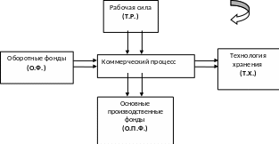 Первое – основные производственные фонды (О.П.Ф) (склады, торговые помещения, торговое оборудование, транспорт для перевозки товара).