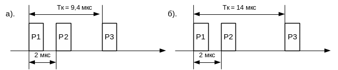 В запросных сигналах режимов «УВД» и «RBS» в используются два импульса, P1 и Р3. Кроме этих импульсов, в запрос включается импульс Р2, обеспечивающий работу схемы защиты ответчика от приема запросных сигналов, излучаемых боковыми лепестками антенны запросчика. Кодом запроса является временной интервал Тк между импульсами P1 и Р3. Величина Тк определяет вид запрашиваемой дополнительной информации.