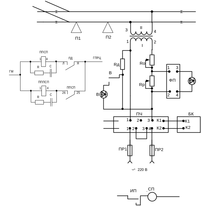 Рисунок 1 – Схема горочной рельсовой цепи частотой 25Гц