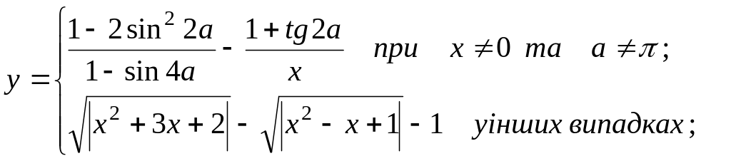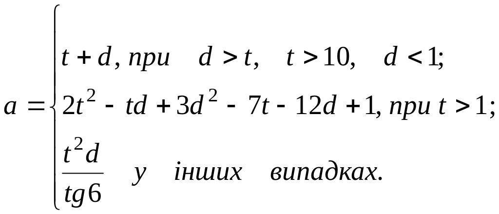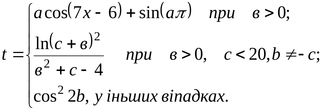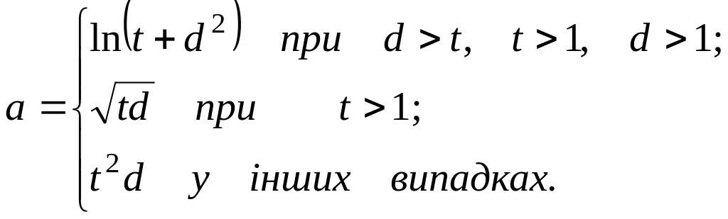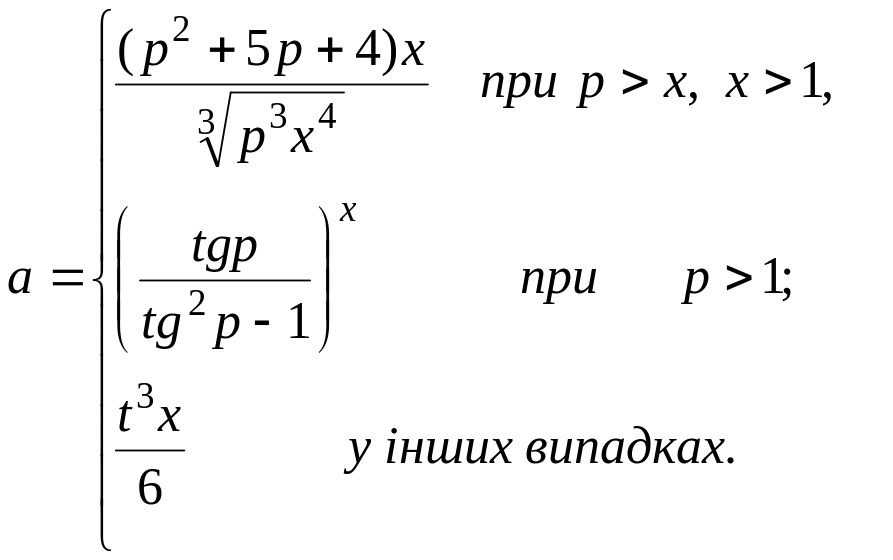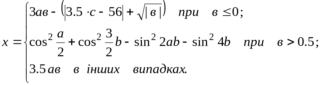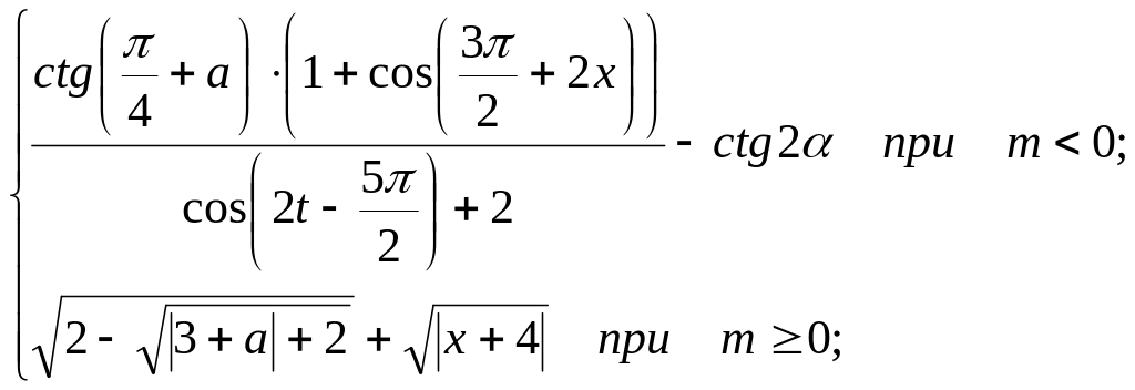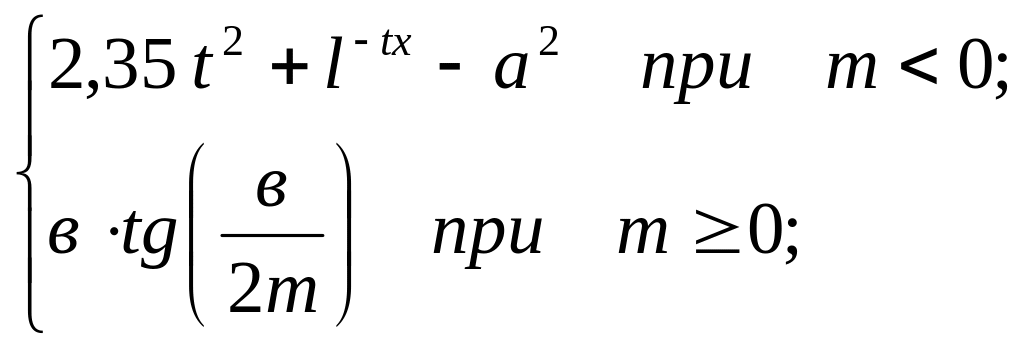 Значення m обирається із множини – 5 5 із кроком 0,5; = 3; значення обирається із множини [– 3 3] із кроком 1; а – із множини 0 50 із кроком 10. Значення змінних (x) задає користувач з клавіатури.