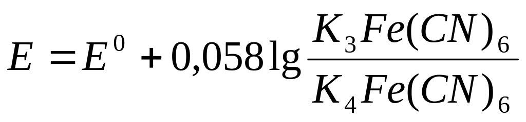 У точці еквівалентності, та особливо при появі першої порції надлишку титранту, різко змінюється співвідношення концентрацій [K3Fe(CN)6]/[K4Fe(CN)6] (концентрація K4Fe(CN)6 збільшується), змінюється також реальний потенціал цієї пари. В результаті цього дифеніламін із окисненої форми синього кольору переходить у відновлену (безбарвну). Схематично це можна надати: