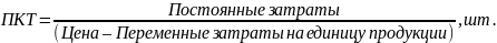 Для одного изделия точка безубыточностиопределяется по формуле: