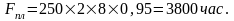 В году 250 рабочих дней. Режим работы – 2 смены по 8 часов. Потери времени на плановые ремонты – 5%. Потери времени по организационно-техническим причинам – 100 часов.